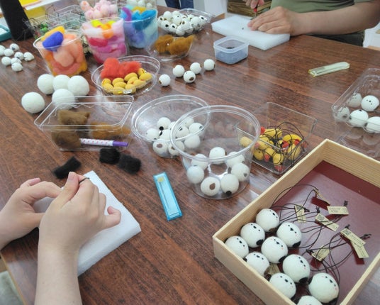 「Felbo」は、色とりどりのフェルトを使い、針やニードルで顔の表情を作るなど、細やかな手作業を重ねて制作されています。多様なメンバーがそれぞれのペースで、丁寧に完成させていきます。
