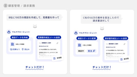 顧客管理と請求業務が連携しても「商談受注。請求書送付して」とチャットするだけ
