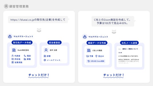 顧客管理業務も「商談作成とお礼メール送信して」とチャットするだけ