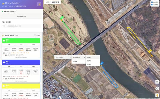 UIを用いたドローン制御も可能(画像内ドローン3機)