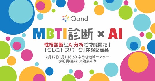 ユニークなアプローチで企業の組織課題を解決する株式会社Qandは、性格診断とAIを用いた新プログラム「タレントスパーク」の体験会を2月17日(月)19時より四谷地域センターにて開催することが決定した。