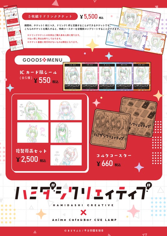 アニメ制作会社パッショーネ、ハヤブサフィルムが運営している『Anime Cafe&Bar CUE LAMP』は12月20日(金)より『ハミダシクリエイティブ』コラボメニュー&グッズの販売をいたします。