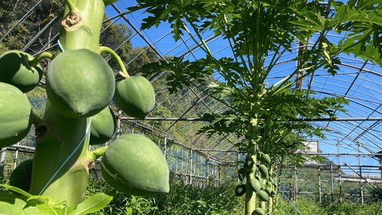青パパイヤ栽培の様子。栽培した青パパイヤを使った料理・食事会も検討中