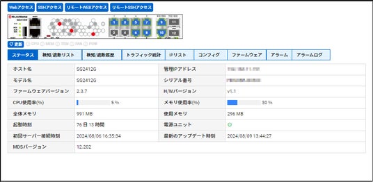 SG CloudはSubGateのステータス、検知/遮断情報、履歴、トラフィックの量、機器のコンフィグバックアップ、ファームウェアのアップデートなどSubGateの総合管理ができるサービス。