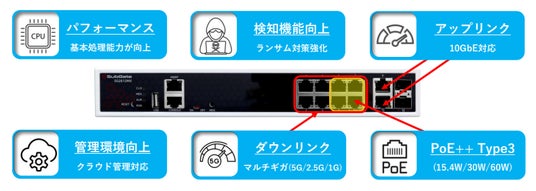また、IEEE802.3bt Type3に対応しているので無線APなど多くのPoE対応製品の電源工事が不要になる。
