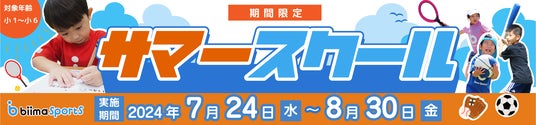 株式会社biima (本社:東京都渋谷区、代表取締役:田村恵彦)は、東京都有明エリアにある商業施設「有明ガーデン」内で運営する「biima sports stadium(ビーマスポーツスタジアム)」にて2024年7月24日より夏休み限定で遊びながら学べる「biima sports サマースクール」を開始します。