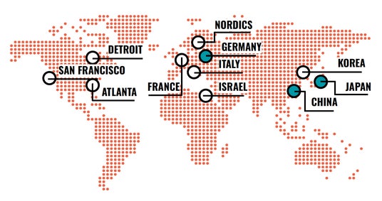 ドイツを中心に、ヨーロッパ、北欧、イスラエルなど、モビリティ分野における欧州最大規模のグローバルネットワークを駆使します。世界最先端の動向を捉え、革新的な技術と斬新なビジネスモデルを日本に紹介するとともに、次世代モビリティ分野の新たな市場創出を促進します。