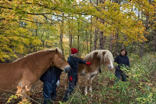 「いのちを還す森」埋葬エリアの近くには人々と共に景色を育む馬たちが暮らしています