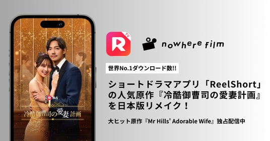 nowhere film株式会社(本社:東京都渋谷区、代表取締役:酒井大輝)は、世界No.1ダウンロード数(※1)を誇るのショートドラマアプリ「ReelShort(リールショート)」において、グローバルでの人気作「Mr Hills' Adorable Wife」の日本版『冷酷御曹司の愛妻計画』の制作を担当しました。本作は5月3日から独占配信がスタートしています。(※2)
