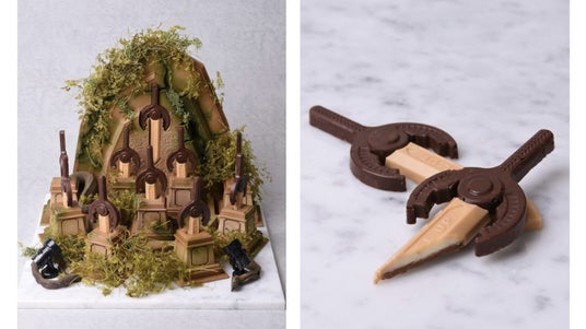 冒険の先にたどり着いた伝説の封印された勇者の剣。剣を引き抜いた者が、選ばれし者となり、レベルアップとなる…そんな体感が一粒で出来る、楽しいボンボンショコラとして作りました。