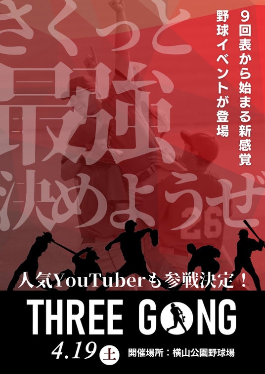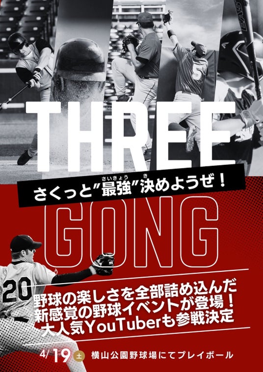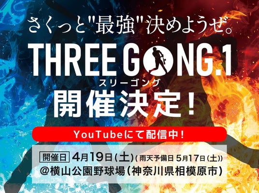 ついに「THREE GONG」が本格始動!第1回大会は横山公園野球場(神奈川県相模原市)で開催いたします。また今大会からは「THREE GONG」オリジナルチームが参戦。メンバーも募集中です!