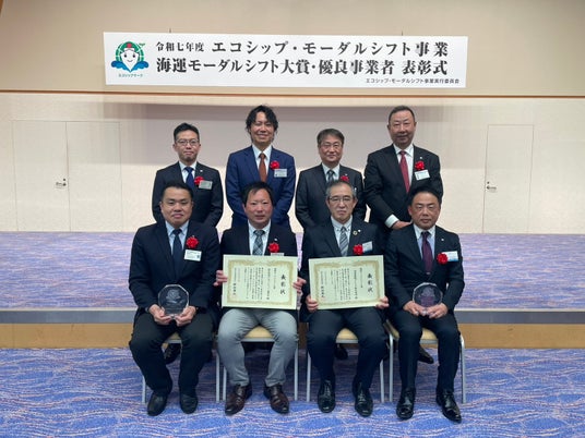 株式会社ロジネットジャパン(本社:北海道札幌市 代表取締役社長執行役員 橋本 潤美)の連結子会社である株式会社ロジネットジャパン西日本(本社:大阪府大阪市 代表取締役社長執行役員 田中 淳弘)は、フェリーを利用した家庭紙の長距離輸送において、日本製紙クレシア株式会社(本社:東京都千代田区 代表取締役社長 安永 敦美)とともに令和7年度「エコシップ・モーダルシフト事業 海運モーダルシフト大賞」を受賞し、国土交通省海事局長より表彰を受けました。