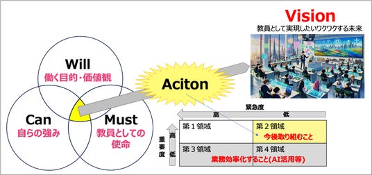 【ワーク】学校のビジョンと個人のビジョンの重なりから、学校で取り組むこと、業務効率化を考え、行動計画を策定する
