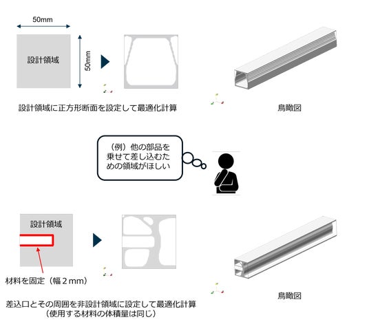 図2のように、押出成形においてZ方向に一様な形状を前提とし、型材の断面における最適な形状を解析するシステムを新たに開発しました。