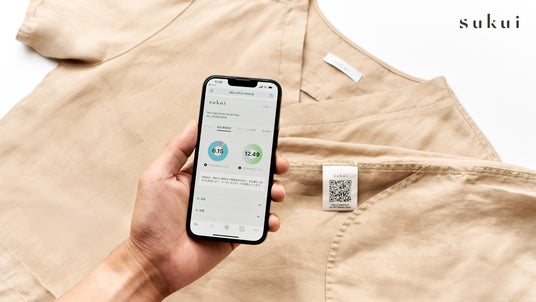 sukuiは、ヘンプを用いたカーボンネガティブ医療ウェアです。製品にはブロックチェーン型DPP(デジタルプロダクトパスポート)を搭載。CO2排出・吸収量やトレーサビリティ情報を可視化し、医療従事者がサステナブルな選択をできる仕組みを提供します。