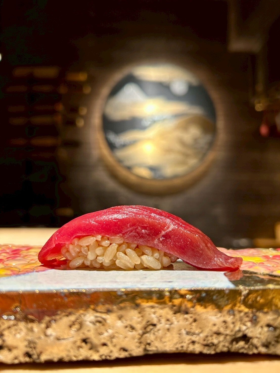 大間の荒波で育ち、一本釣りにより水揚げされた本鮪は、その圧倒的な脂の乗りと繊細な旨味において、鮨食材の最高峰に位置づけられています。この希少な素材を、30年にわたり技を磨いてきた職人・山下氏が、京懐石で培った洗練の感性とともに、一貫に込めます。