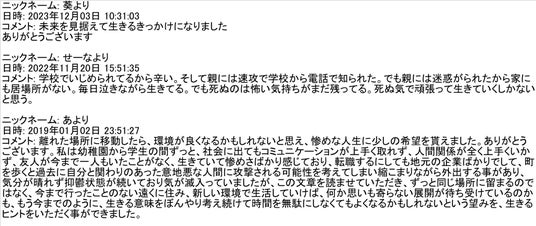 しかし、この活動によって、数多くの自殺防止に貢献してきたことから、さらなる活動の展開が必要であると、痛切に感じています。