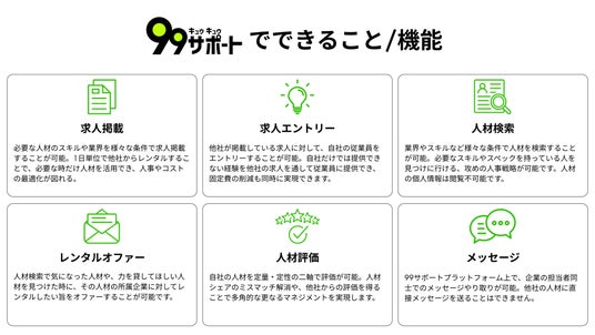 99サポートは、企業間で人材を「貸す」「借りる」ことができる人材シェアプラットフォームです。