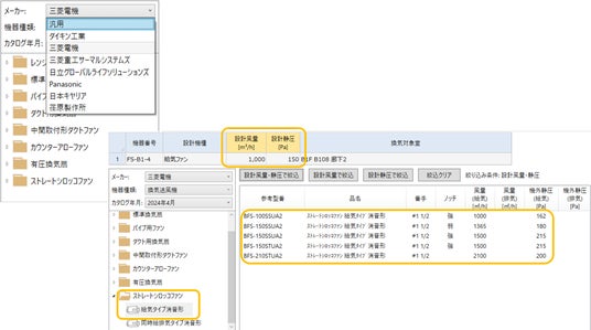メーカーを選択するだけで詳細な機器選定が可能。『STABRO負荷計算』との連携により、熱負荷計算結果も自動反映。作業の大幅な省力化を実現。