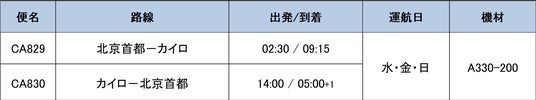 北京首都(PEK)⇔ カイロ(CAI)新規就航