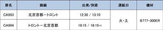 北京首都(PEK)⇔ トロント(YYZ)新規就航