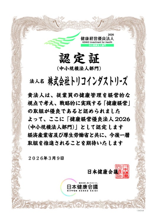 理美容ディーラーの株式会社ヘアラボ(本社:大阪市浪速区、代表取締役社長:村島有治)は2026年3月、経済産業省と日本健康会議が共同で実施する「健康経営優良法人2026(中小規模法人部門)」に認定されましたので、お知らせいたします。また、グループ会社、理美容メーカーの株式会社トリコインダストリーズも「健康経営優良法人2026(中小規模法人部門)」に同時認定されました。両社ともに2年連続の認定となります。また、グループ会社で美容室を運営する株式会社アロッタは今年初めて「健康経営優良法人2026」に認定されました。長時間労働が一般的となっている美容室での取り組みが評価されました。トリコ・ヘアラボ・アロッタグループは、持続可能な開発目標(SDGs)のひとつ「目標8.働きがいも経済成長も=包摂的かつ持続可能な経済成長及びすべての人々の完全かつ生産的な雇用と働きがいのある人間らしい雇用(ディーセント・ワーク)を促進する」を実現するために、社員の健康と充実した就労環境を整えてまいります。