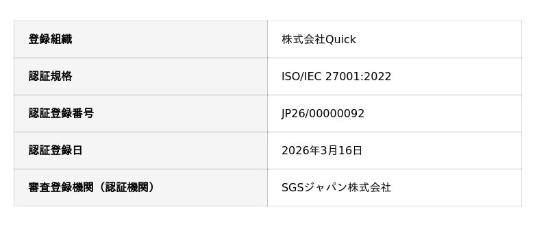 「進化し続ける医療インフラをつくる」をミッションに掲げる筑波大学発スタートアップ、株式会社Quick(本社:茨城県つくば市、代表取締役:武田淳宏、以下「Quick」)は、情報セキュリティマネジメントシステム(ISMS)の国際規格「ISO/IEC 27001:2022」の認証を取得したことをお知らせいたします。
