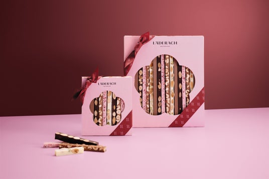 レダラッハのシグネチャーアイテム《フレッシュショギー スティック》が、春をテーマにしたシックなピンクの限定パッケージで登場いたします。くちどけの良い様々なフレーバーが楽しめるスティックチョコレートのアソートメントは、ストライプ模様も美しく特別なギフトとして喜ばれます。