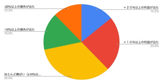 AIを活用している方に利益がどの程度出ているのか尋ねたところ、投資にAIを活用している投資家のうち、投資成果に言及した層では、37.8%が「10%以上の利益」を実現したと回答。