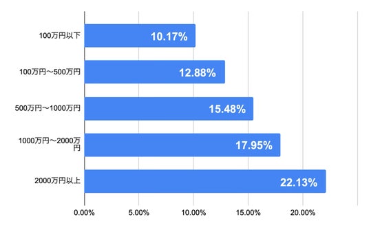 「1,000万~2,000万円」では17.95%、「2,000万円以上」では22.13%と、右肩上がりで推移しています。
