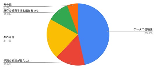 次いで、「AIの過信」(21.1%)、「予測の根拠が見えない」(15.5%)など、判断の裏付けや透明性に関する懸念が続いています。
