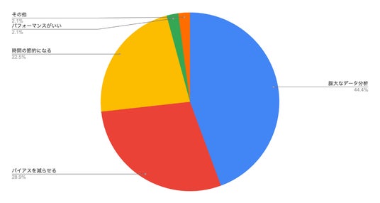 次いで「バイアスを減らせる」(28.9%)、「時間の節約になる」(22.5%)と続き、