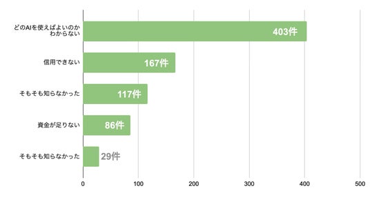 最多の回答は「どのAIを使えばよいかわからない」(403件)でした。
