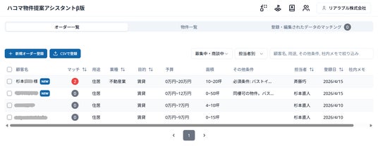 ■ オーダーと物件のマッチング自動提案