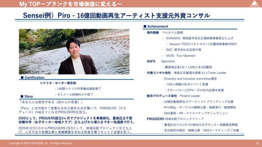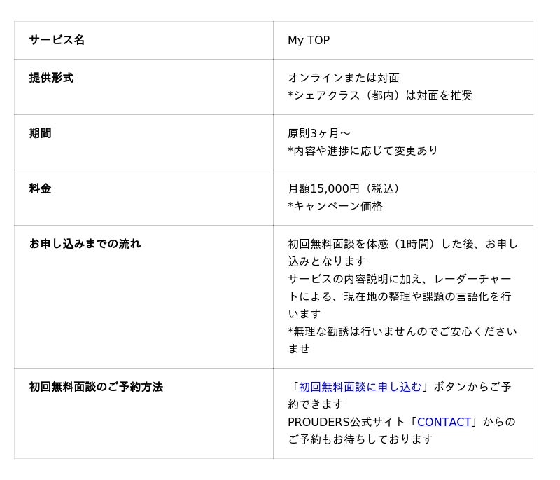 PROUDERS合同会社(本社:東京都豊島区)は、第2の目標を見出せず不安を感じているアスリート、自己分析に課題を抱える就活生、休学中の方、さらには休職・出産・留学やワーキングホリデーによる履歴書の空白期間(ブランク)が生じている方々に向けて『My TOP』(マイトップ)の提供を開始いたしました。