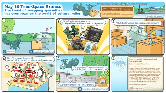 5月18日は国際博物館の日です。今年は「特産品交換」の潮流が文化財の世界に広がりました。四川省文化財管理局の主導の下、中国南西部の三星堆博物館、金沙博物館、羅家壩博物館の3つの主要博物館が、時空を超えた「文化財配送」イベントを開催しました。