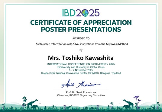 - 2025年11月 生物多様性をテーマにタイで開催されたIBD2025タイ生物多様性国際会議(International Conference on Biodiversity and Conservation)にて、代表の川下 都志子がポスターセッションを実施(※2)