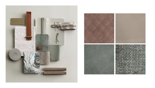 柔らかなレザーや、特徴的な型押しのレザー、贅沢な質感のファブリックも充実。
