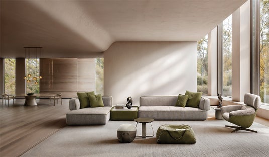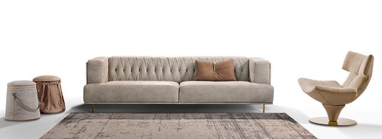 「Puzzle(パズル)」ソファは、その名の通り、ジグソーピースのように組み合わせて無限のレイアウトを生み出します。座面には複数層の高密度ポリウレタンを使用し、クッションと背もたれには贅沢なダウンを含め、見た目の美しさと、包み込むような快適さの両立を実現しました。さらに、シート中央からサイドにかけて施されたレザーディテール入りのタフティングステッチが、上質さと個性を演出。細部にまでこだわった職人の技が、空間にさりげない高級感を添えます。