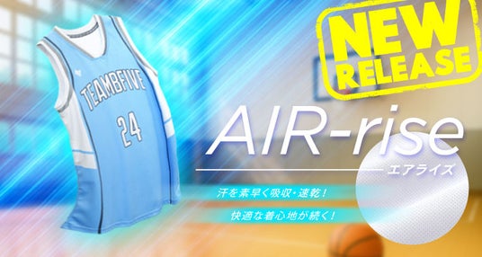 スポーツブランドの運営を中心に多彩な事業を展開している株式会社フラスコ100cc(本社:東京都台東区、代表取締役:矢口 貴士)が運営するバスケットボールウェアブランド「BFIVE(ビファイブ)」は、2025年4月14日より、吸水・速乾に優れた新生地「AIR-rise(エアライズ)」を採用したユニフォームをリリースしました。