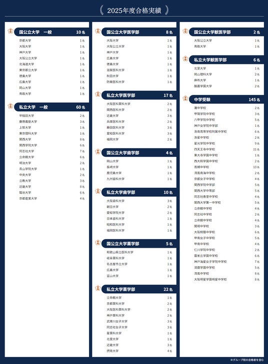 灘中学校、甲陽学院中学校、六甲学院中学校などを含め、30校・145名