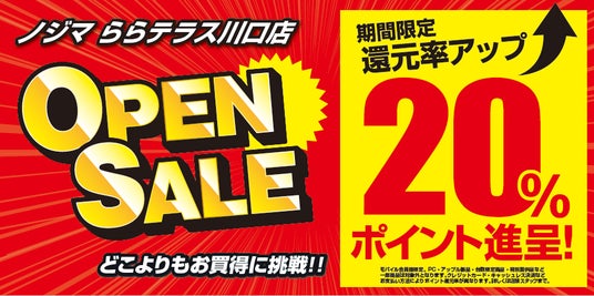 5/31(土)~6/20(金)の期間中、オープン限定特価としてノジマポイントが『20%ポイント還元』になるお得なセールも開催!