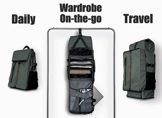容量は17L→30L→最大42Lへ拡張。さらに吊り下げワードローブ機能で、移動中から滞在先まで“整った状態”を保ちやすい設計です。