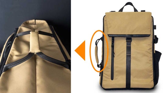 サイドに手持ちがありバッグを横向きでも使用可能、フルオープンファスナーが上部 開口部のように機能するので、荷物の出し入れも楽に行えます。