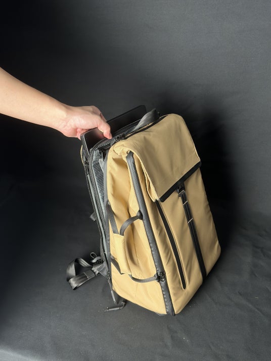 荷物量に合わせて形を変えられるため、通勤~出張~旅行まで1つで対応。帰りに増えた荷物も、サブバッグを増やさず持ち帰れます。