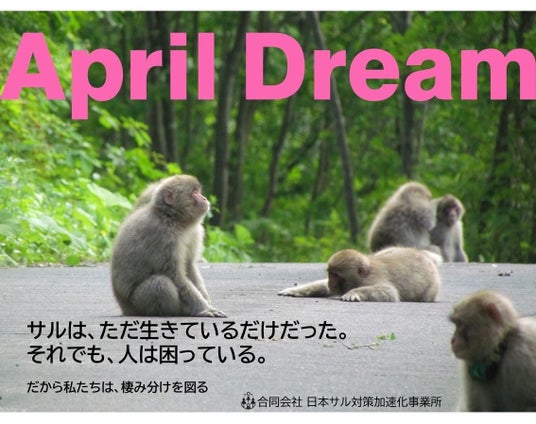 当社は、4月1日を夢を発信する日にしようとするApril Dreamに賛同しています。このプレスリリースは「合同会社 日本サル対策加速化事業所」の夢です。