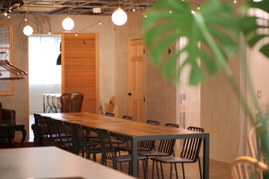 シンプルで洗練されたデザインの会議室は、落ち着いた照明と静かな環境で集中しやすい空間です。大きなテーブルとチェアを備え、社内ミーティングやプレゼンテーション、ワークショップなど幅広くご利用いただけます。