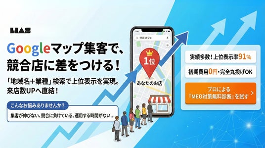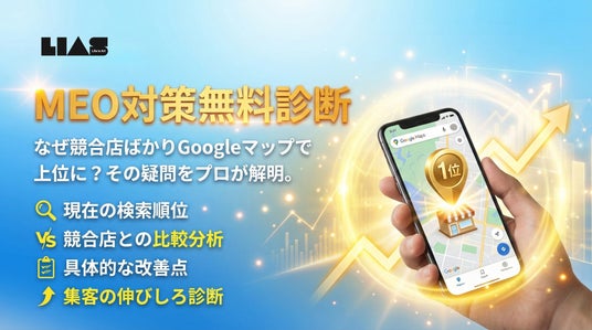 Webマーケティング事業を展開・MEO対策支援実績約2800店舗の合同会社Lias(本社:千葉県千葉市、代表:湯浅 建)は、飲食店、美容室、クリニック、整体院など、実店舗を運営するビジネスオーナー様向けに、Googleマップを活用した集客手法「MEO(マップ検索エンジン最適化)」の現状を分析し、改善点をご提案する「MEO対策無料診断」の受付を2026年1月より開始いたします。