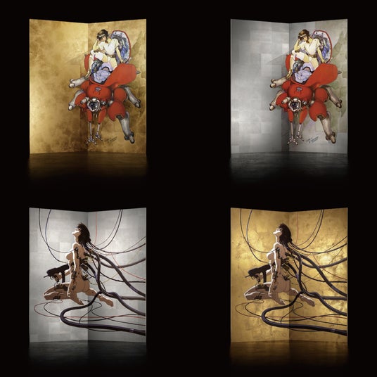 『攻殻機動隊』の象徴的ビジュアルを、日本の伝統工芸〈屏風〉へ拡張した全4種。