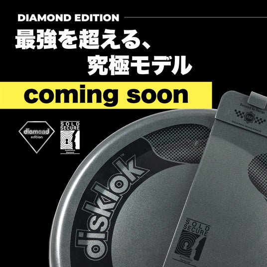 disklok社は第三者検査機関Sold Secureと協力し、より強い切断攻撃に耐えられる鋼素材 「diamonite(R)(ダイアモナイト)」 を独自開発。この素材の含有率をより高めることで、従来モデル「ゴールドエディション」を凌ぐ、高い防御力を実現しました。